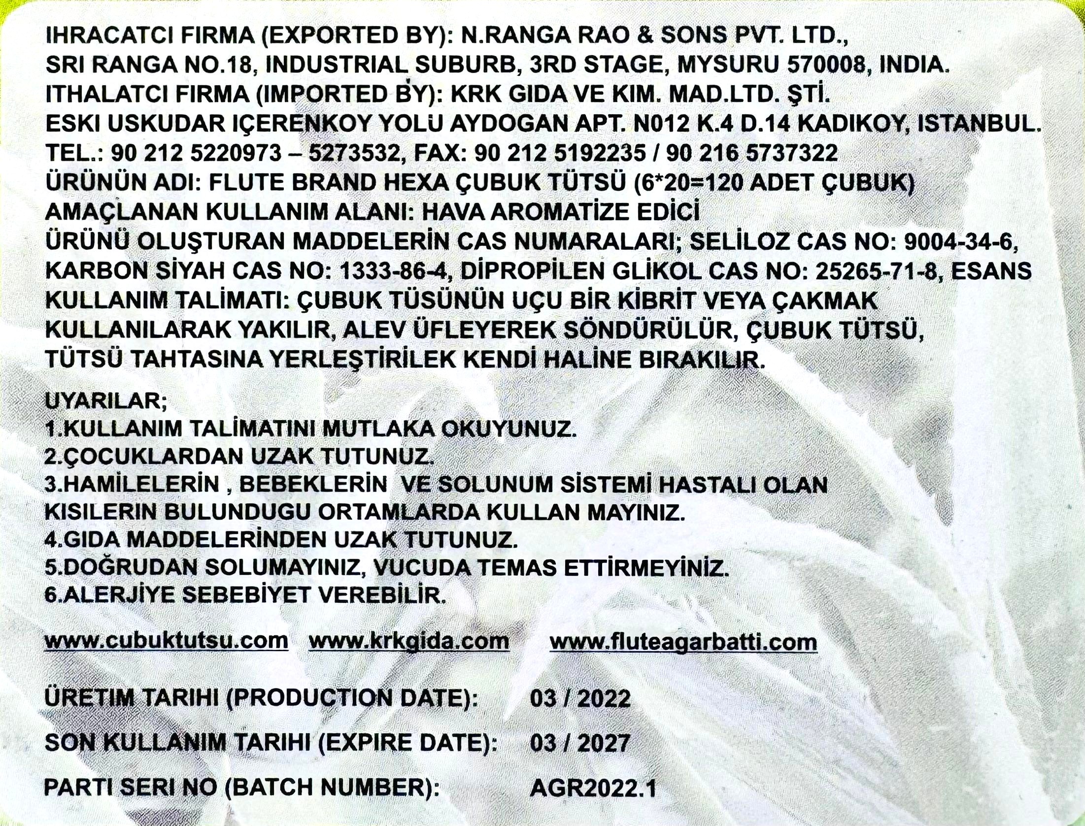 FLUTE ÇUBUK TÜTSÜ ALOE VERA(1 KUTU =6 ADET = 120 ADET ÇUBUK)