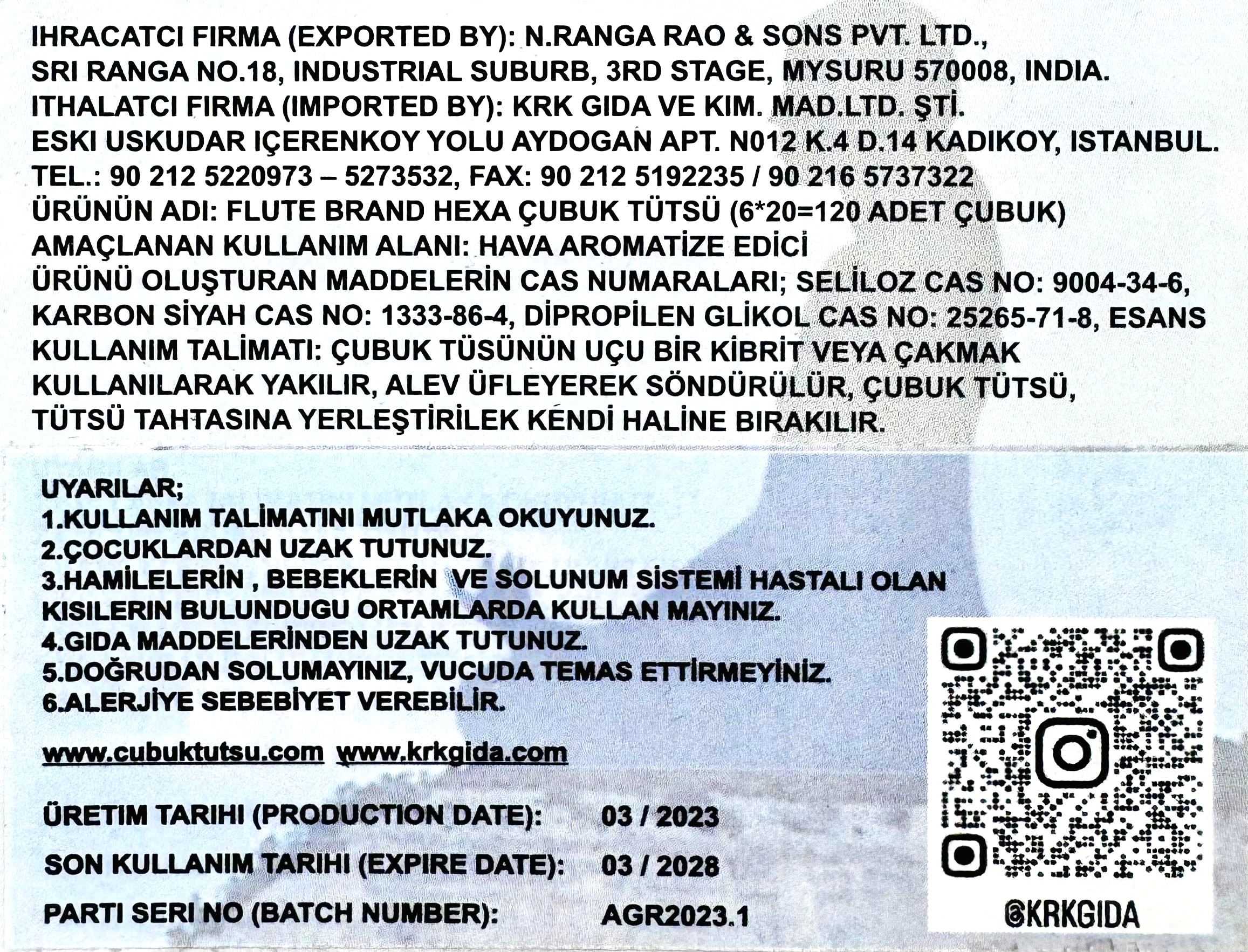 PARTİ SERİ NO (BATCH NUMBER): AGR2024.3