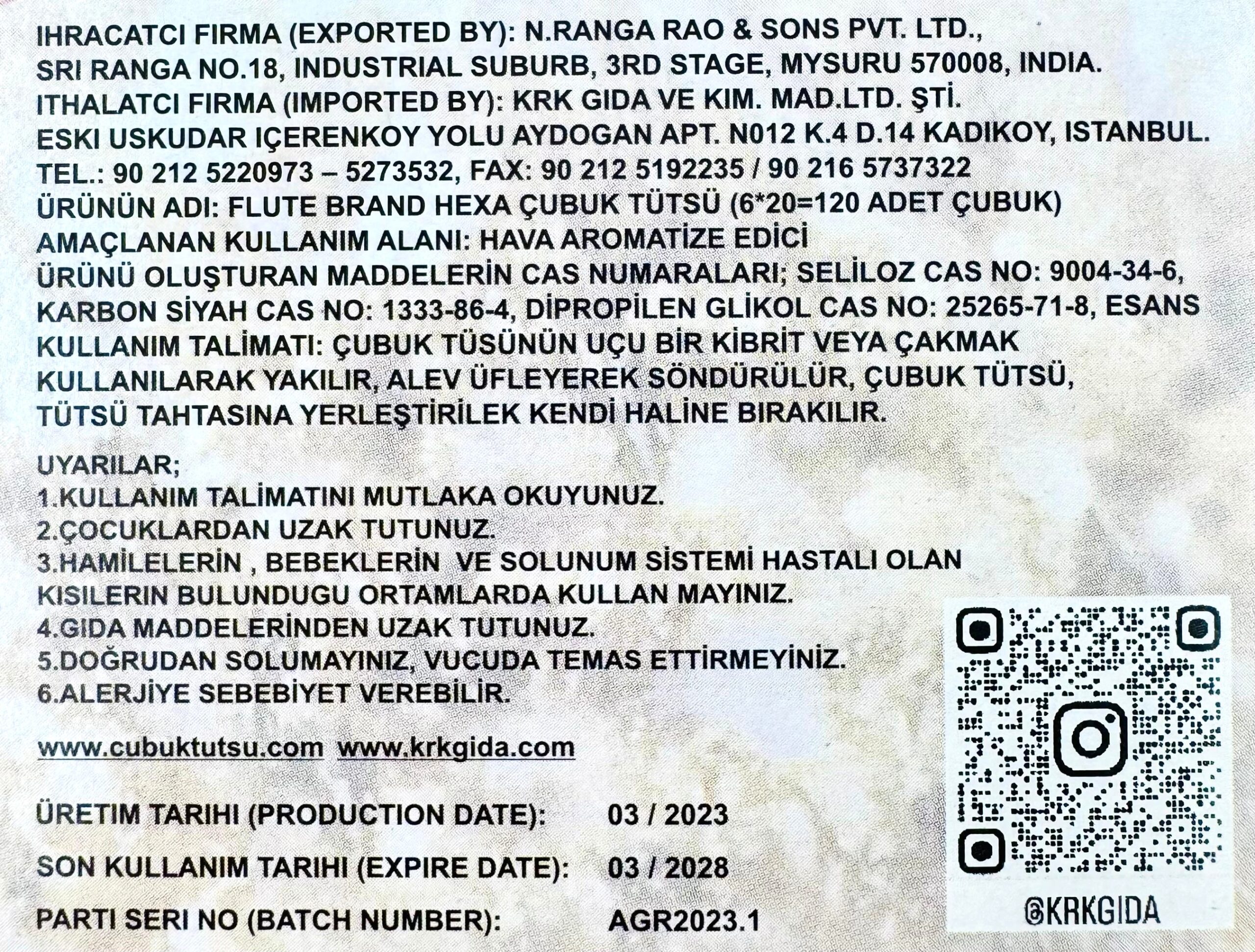 FLUTE ÇUBUK TÜTSÜ BENZOIN(1 KUTU =6 ADET = 120 ADET ÇUBUK)