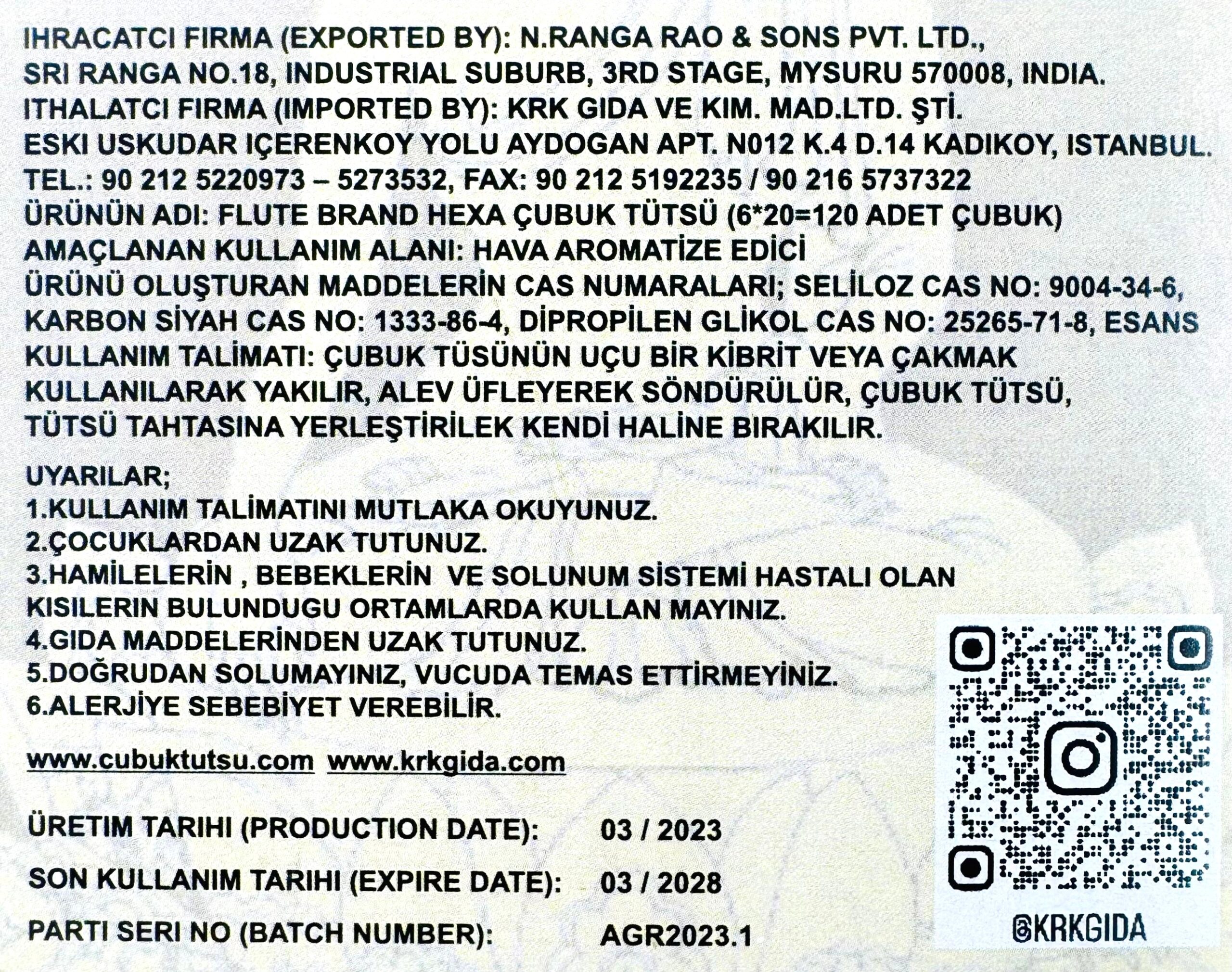 PARTİ SERİ NO (BATCH NUMBER): AGR2024.3