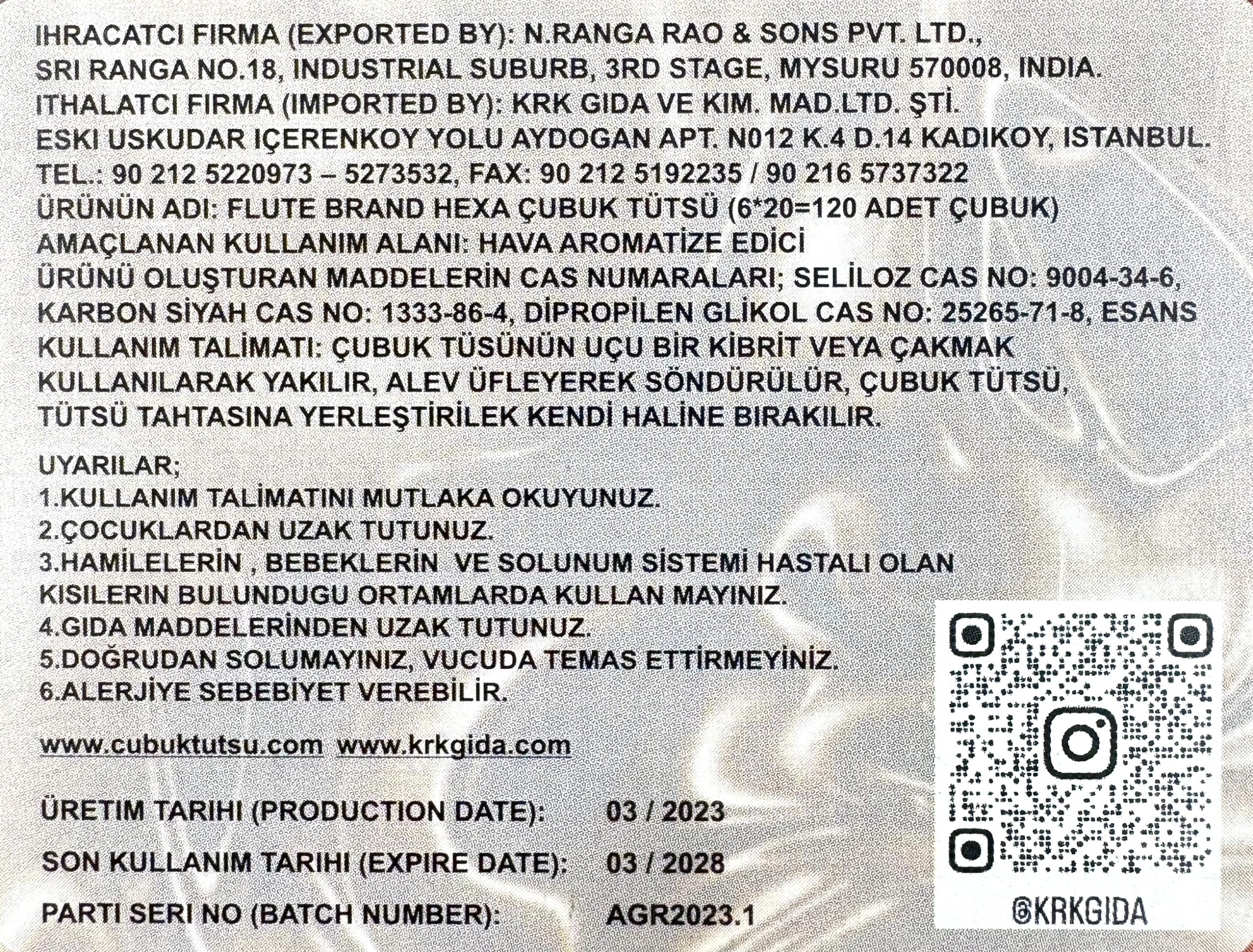 PARTİ SERİ NO (BATCH NUMBER): AGR2024.3