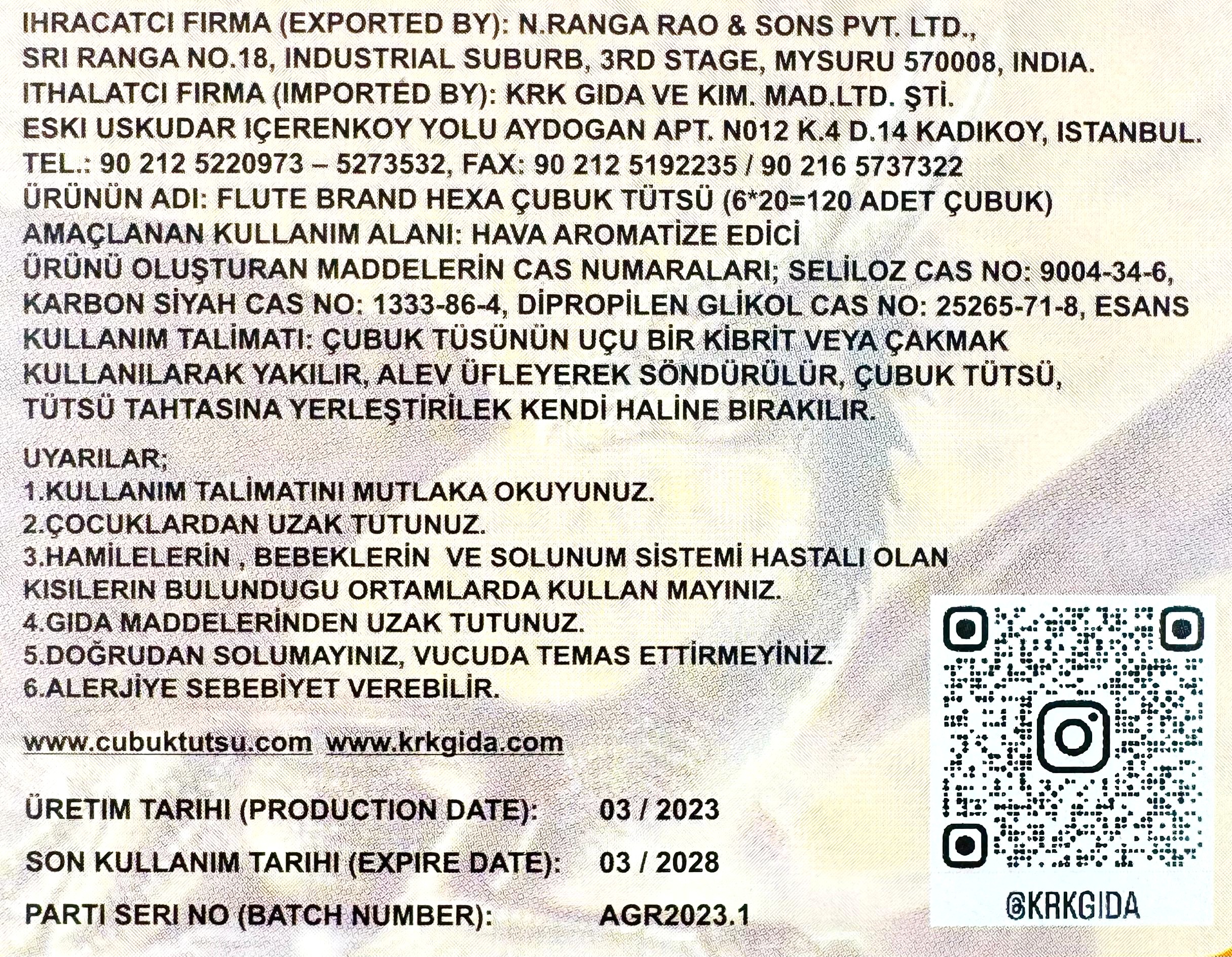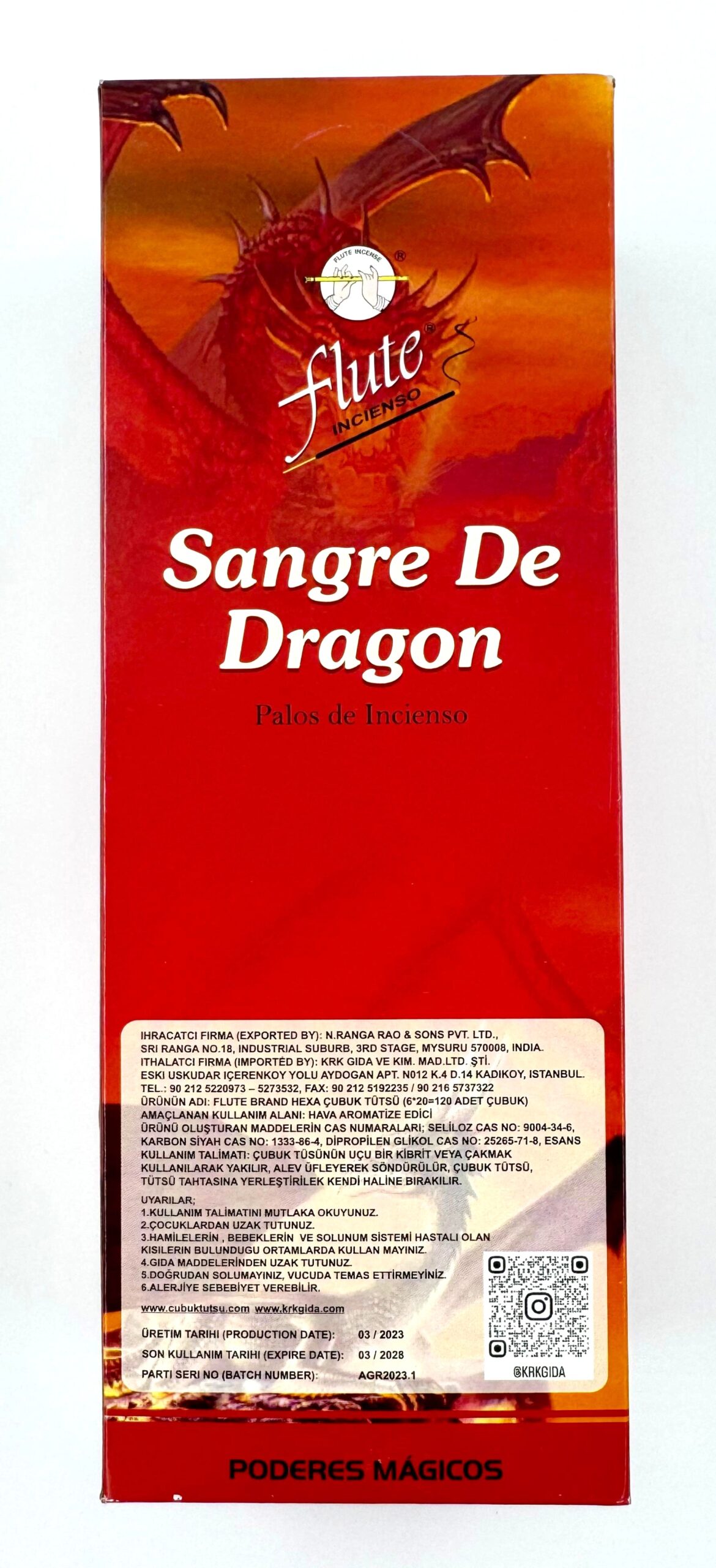 FLUTE ÇUBUK TÜTSÜ DRAGONS BLOOD(1 KUTU =6 ADET = 120 ADET ÇUBUK)