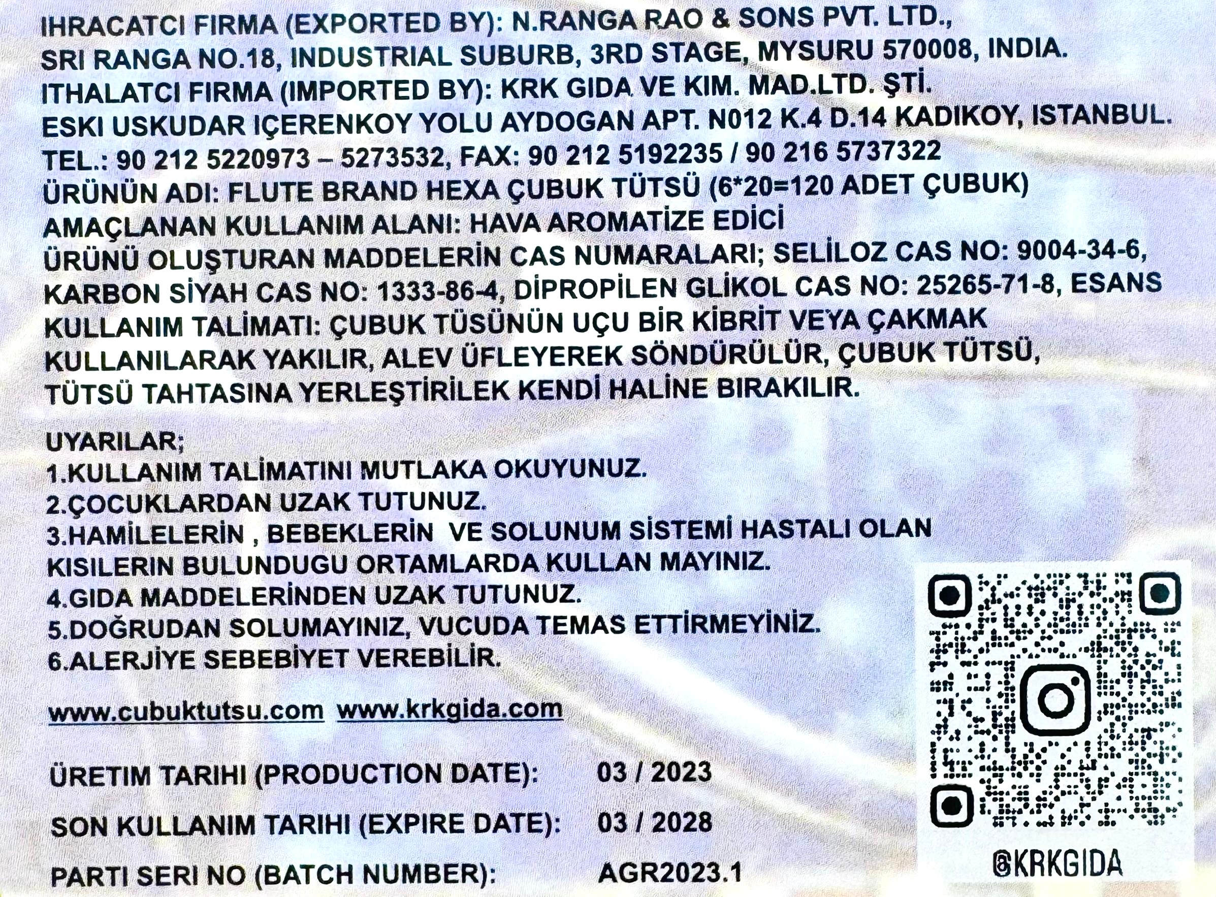 FLUTE ÇUBUK TÜTSÜ HORUS EYE(1 KUTU =6 ADET = 120 ADET ÇUBUK)