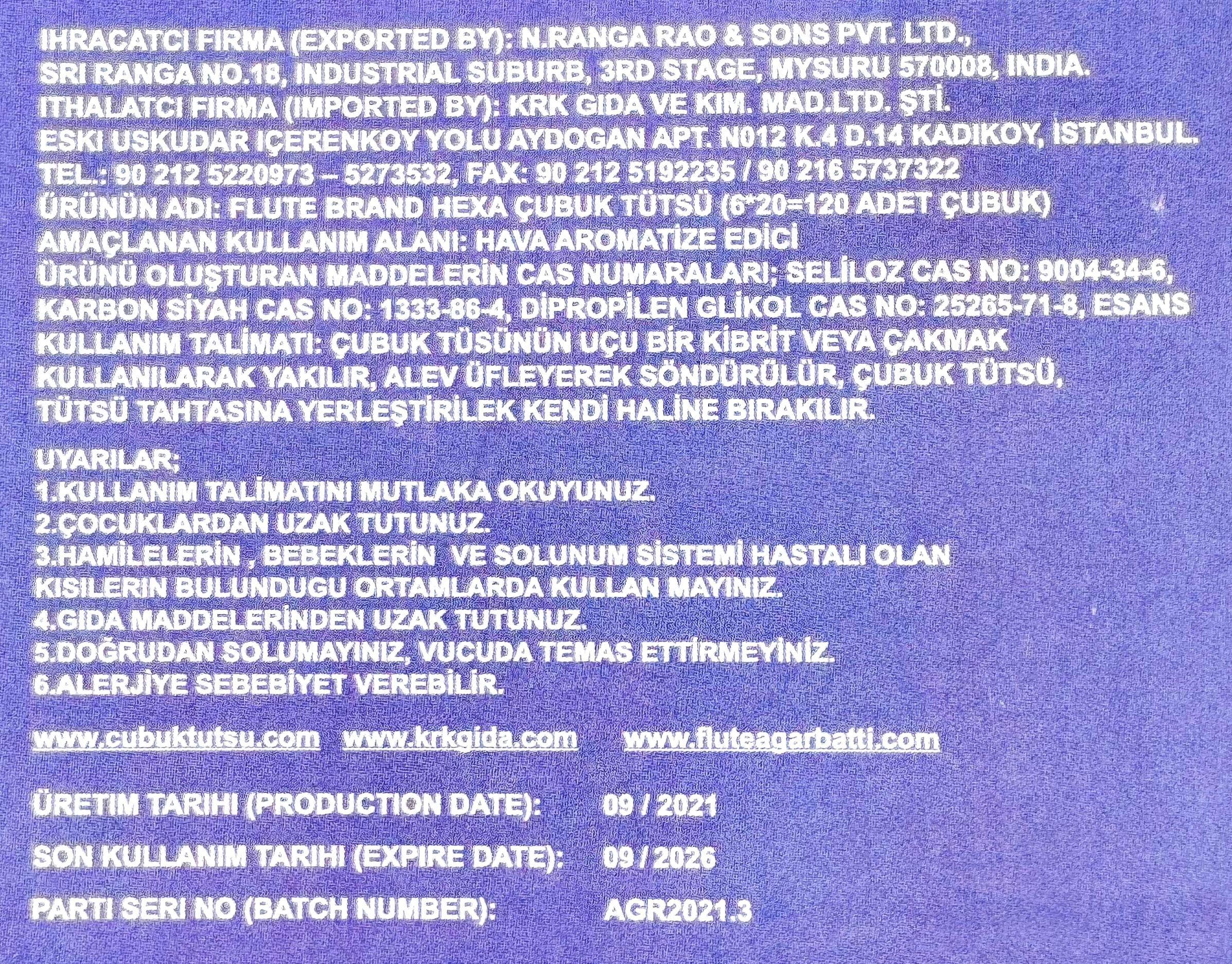 FLUTE ÇUBUK TÜTSÜ LORD OF MIRACLE(1 KUTU =6 ADET = 120 ADET ÇUBUK)