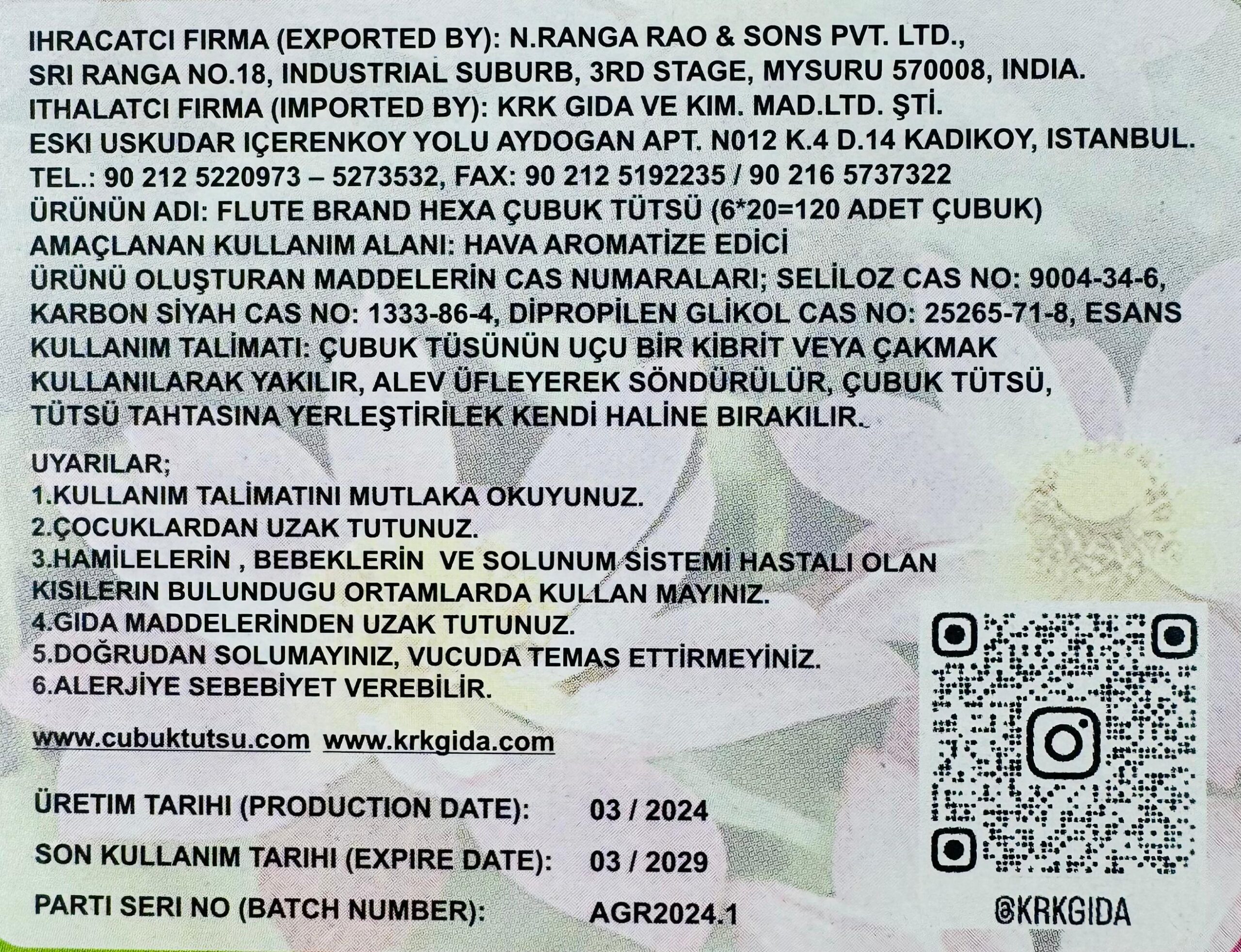 FLUTE ÇUBUK TÜTSÜ LOTUS(1 KUTU =6 ADET = 120 ADET ÇUBUK)