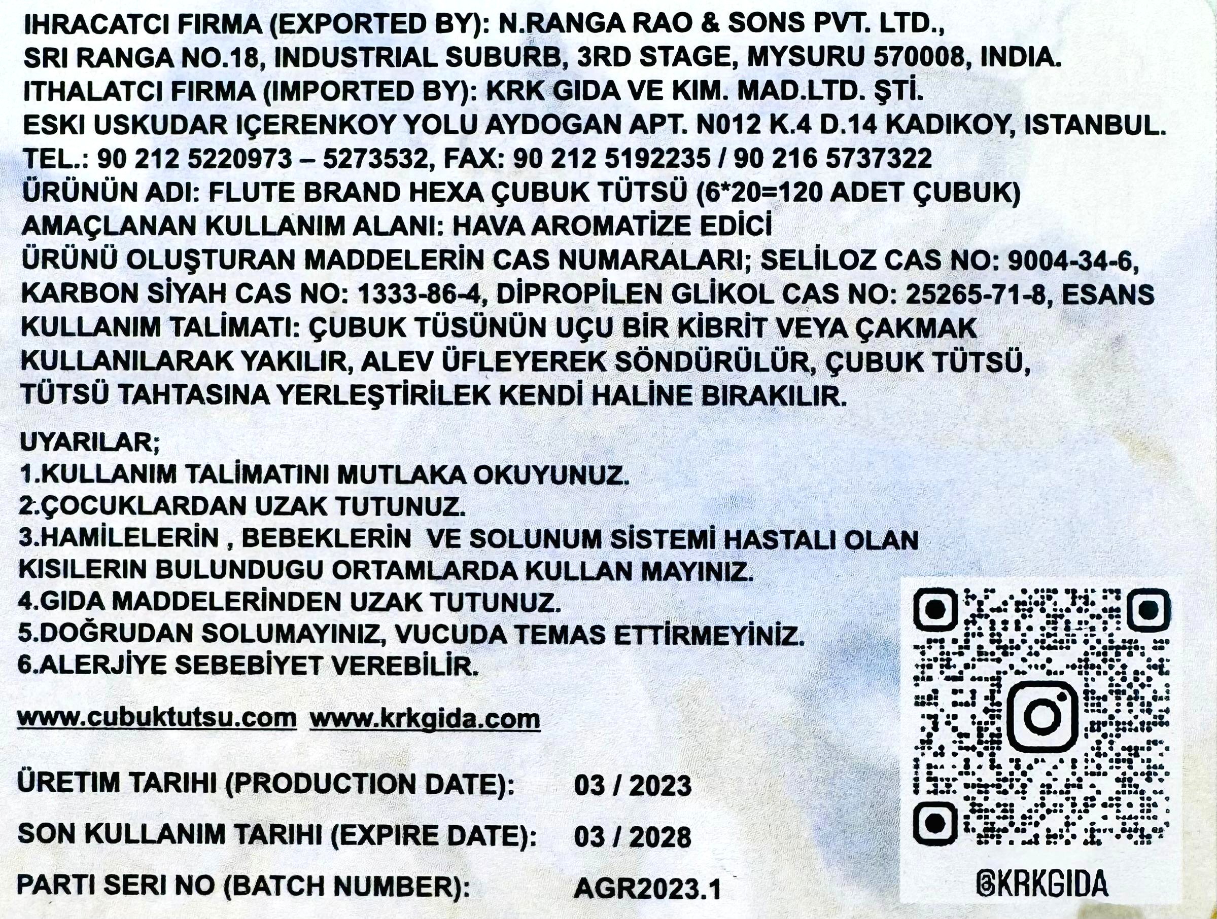 FLUTE ÇUBUK TÜTSÜ MYRRH(1 KUTU =6 ADET = 120 ADET ÇUBUK)