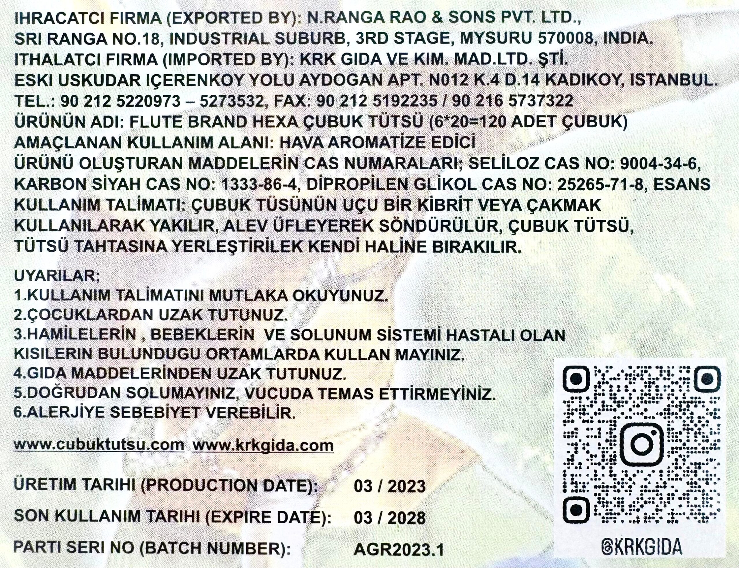 PARTİ SERİ NO (BATCH NUMBER): AGR2024.3