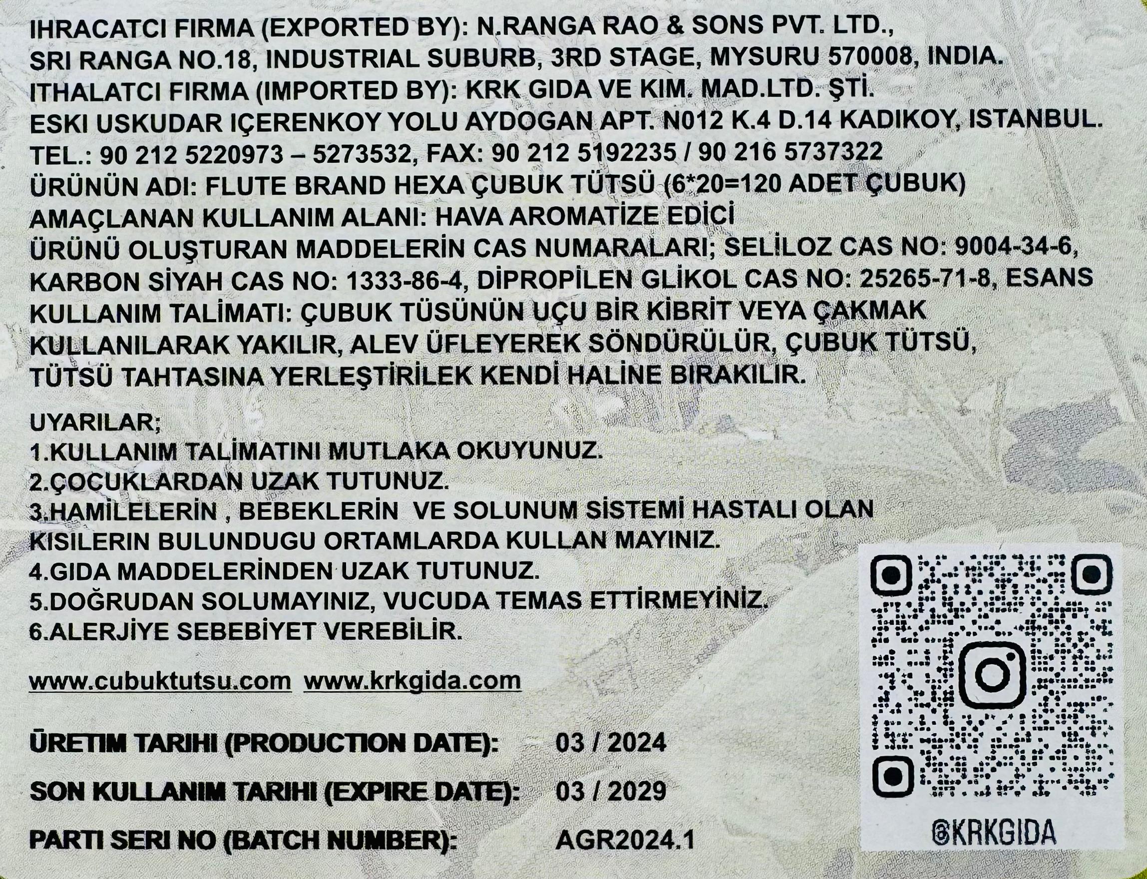 FLUTE ÇUBUK TÜTSÜ PATCHOULY(1 KUTU =6 ADET = 120 ADET ÇUBUK)