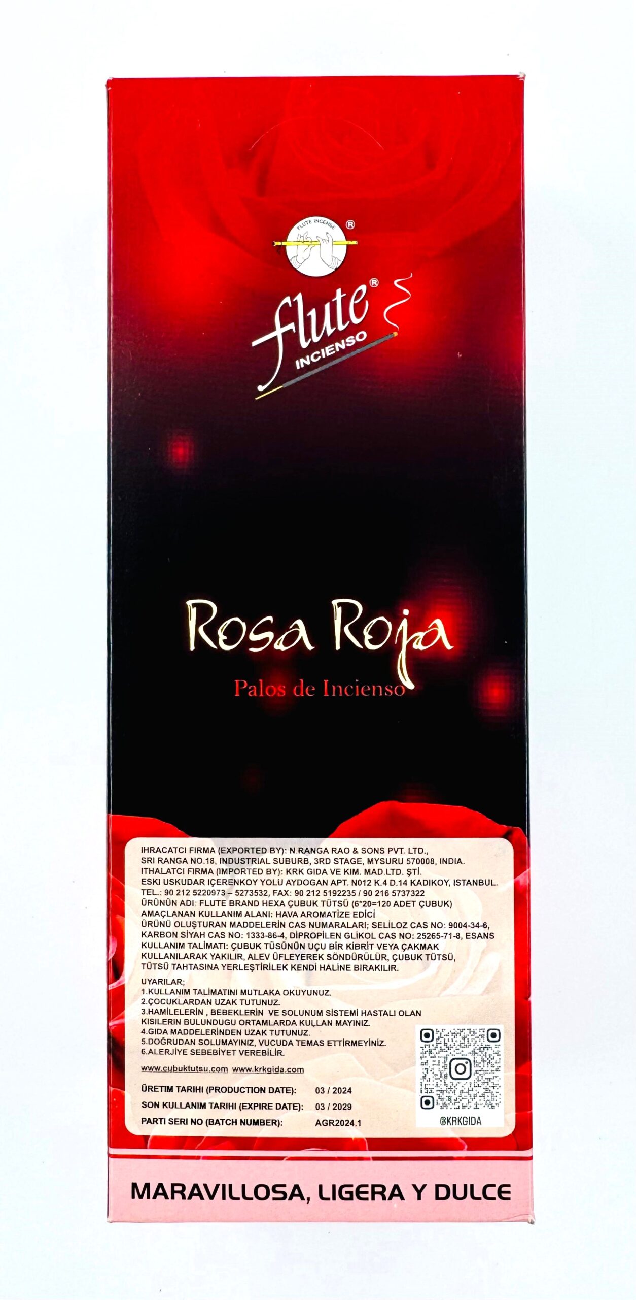 FLUTE ÇUBUK TÜTSÜ RED ROSE(1 KUTU =6 ADET = 120 ADET ÇUBUK)