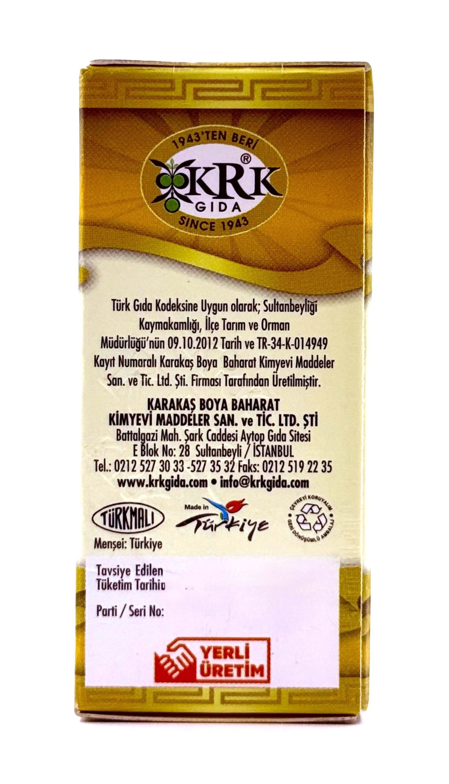 Not: Eser miktarda yemeklik bitkisel yağ içerebilir.
