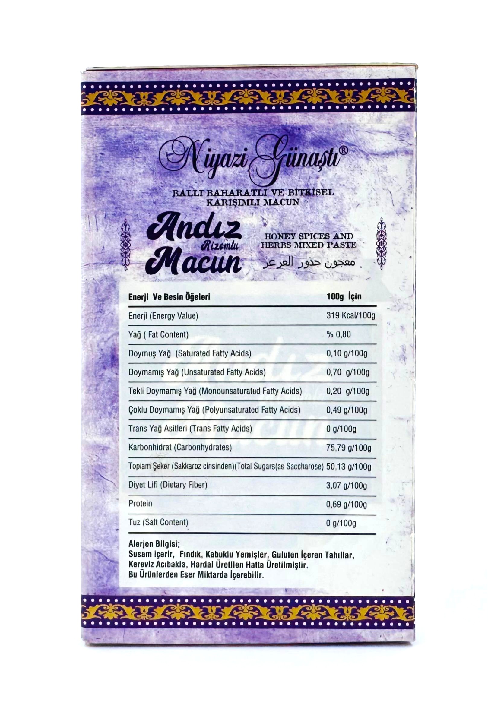 Enerji (Energy Value): 319 kcal/100g