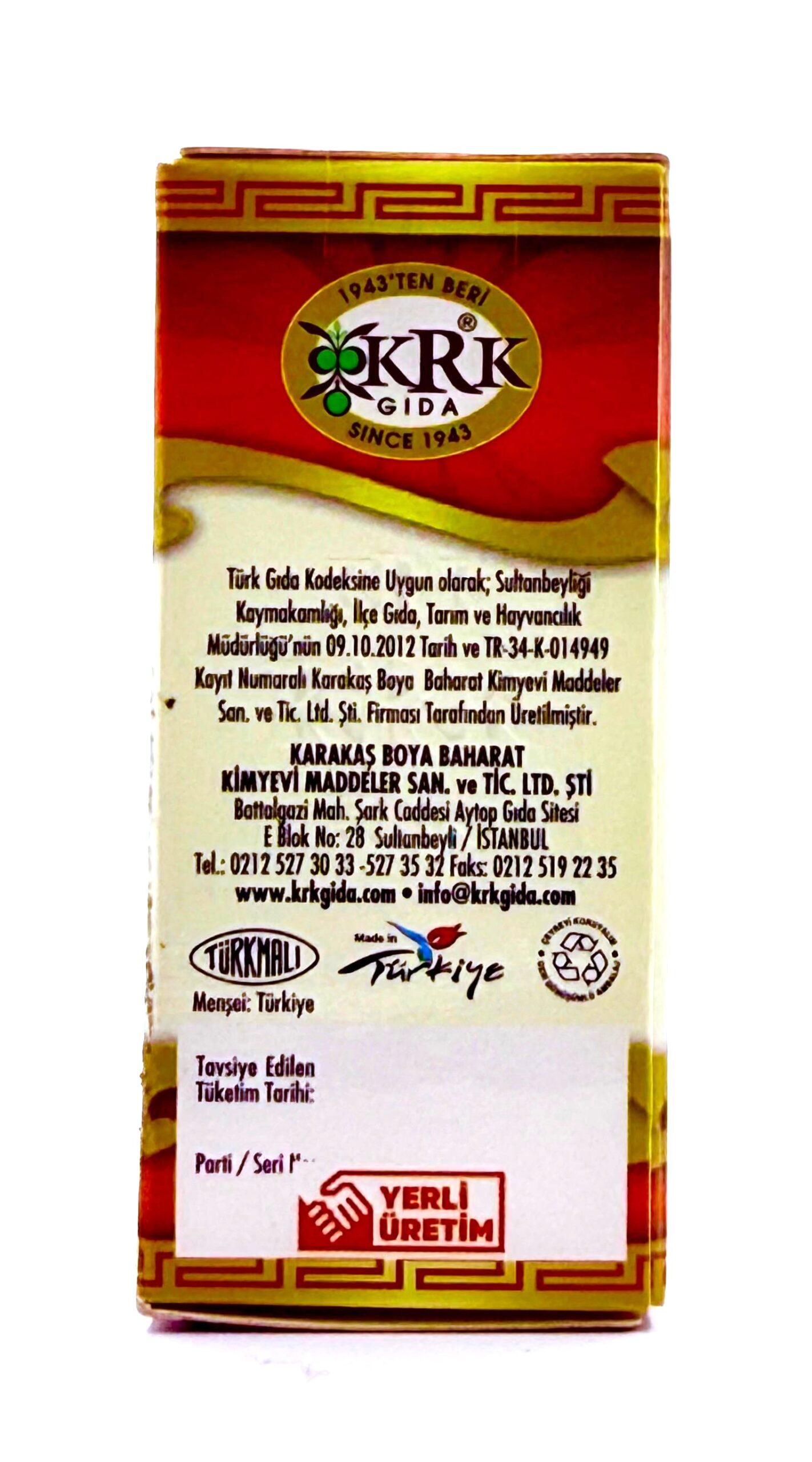 Not: Eser miktarda yemeklik bitkisel yağ içerebilir.