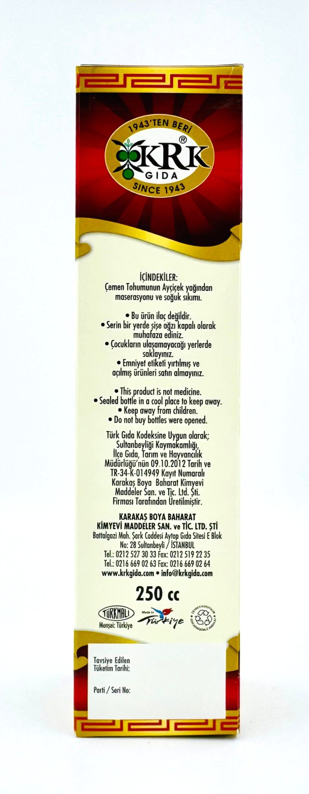 KRK GIDA ÇEMEN TOHUMU YAĞI 250CC