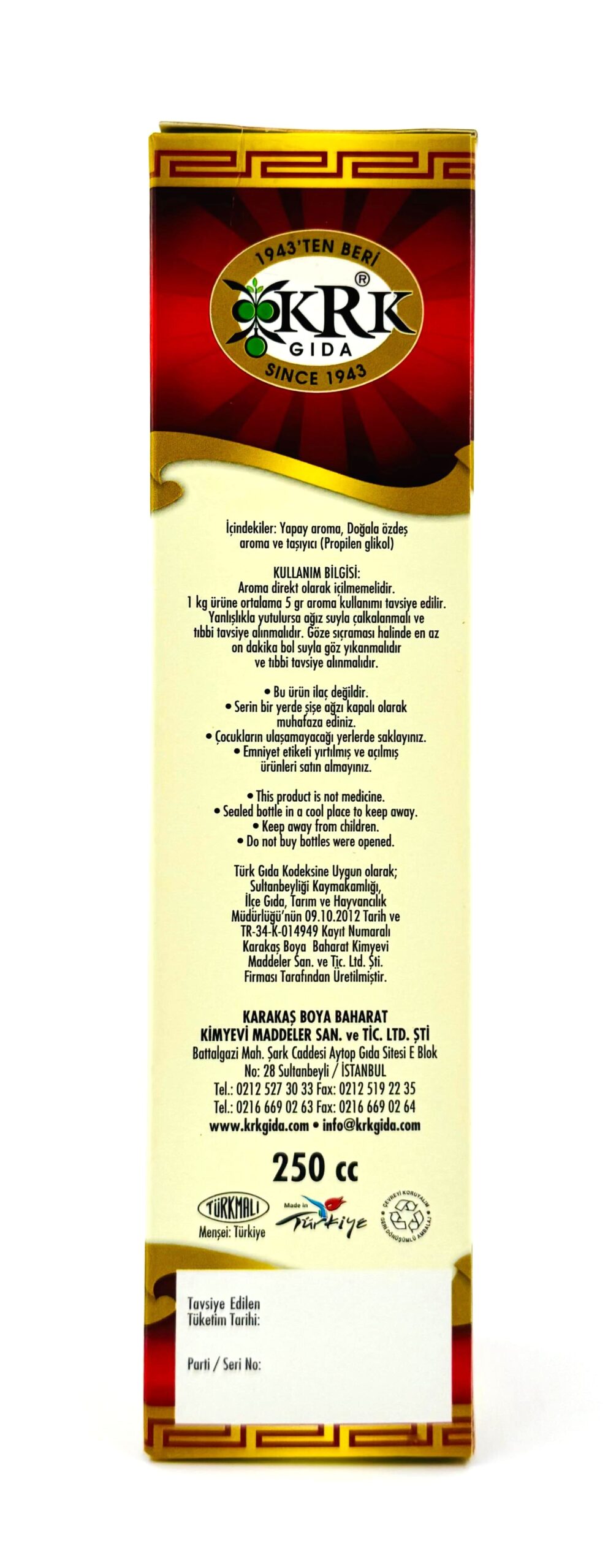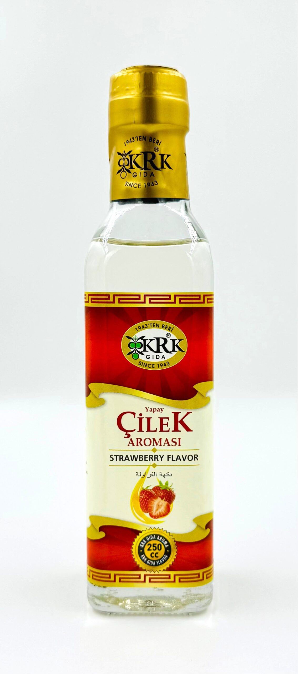 KRK GIDA ÇİLEK AROMASI 250CC İçindekiler: Çilek aroma vericisi STRAWBERRY Kullanim Bilgisi: Aroma direkt olarak içilmemelidir. Kullanım miktarı kullanılacak ürüne göre değişir. Yanlışlıkla yutulursa, ağız suyla çalkalanmalı ve tıbbi tavsiye alınmalıdır. Göze sıçraması halinde en az 10 dakika bol suyla göz yıkanmalı ve tıbbi tavsiye alınmalıdır. Kullanım yeri: İçecekler, şekerlemeler ve pastane ürünleri Uyarılar: Bu ürün ilaç değildir. Serin bir yerde, şişe ağzı kapalı olarak muhafaza ediniz. Güneş ışığından koruyunuz. Çocukların ulaşamayacağı yerlerde saklayınız. Emniyet etiketi yırtılmış ve açılmış ürünleri satın almayınız. English Instructions: This product is not medicine. Sealed bottle in a cool place to keep away. Protect from sunlight. Keep away from children. Do not buy bottles that were opened. Menşei: Türkiye YERLİ ÜRETİM