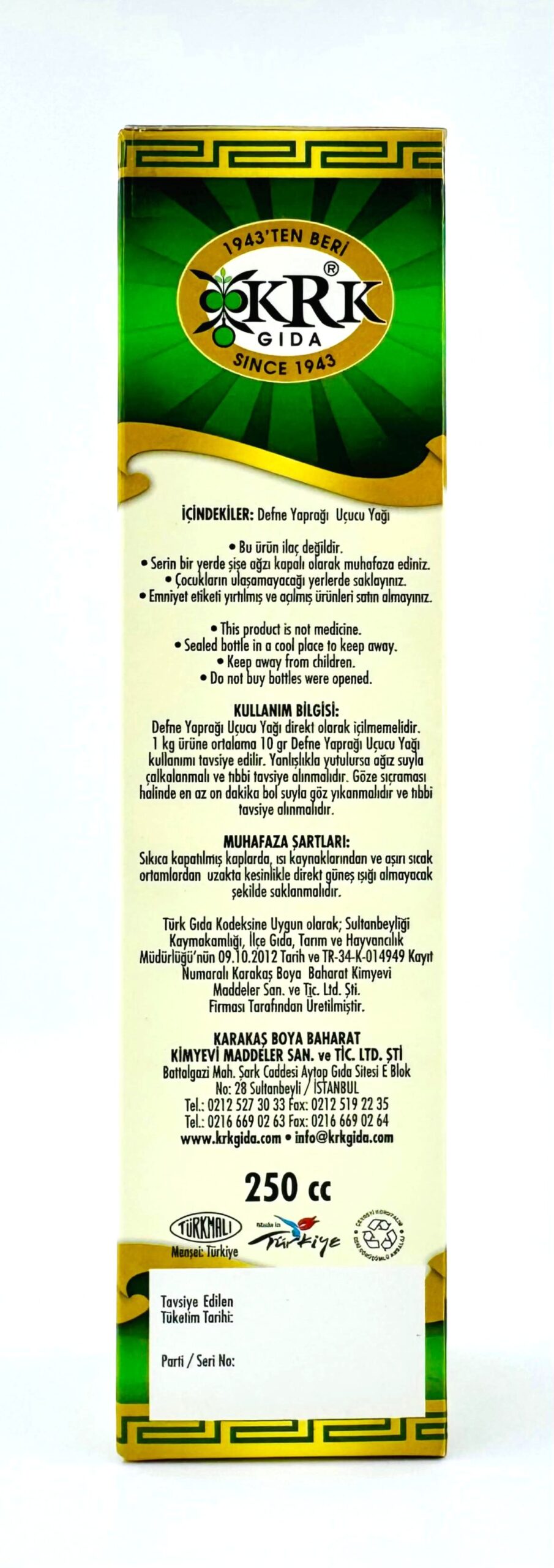 KRK GIDA DEFNE YAPRAĞI UÇUCU YAĞI 250CC
