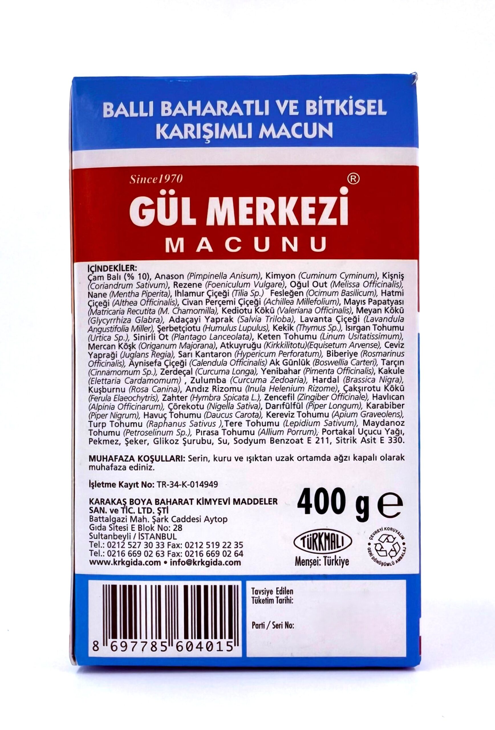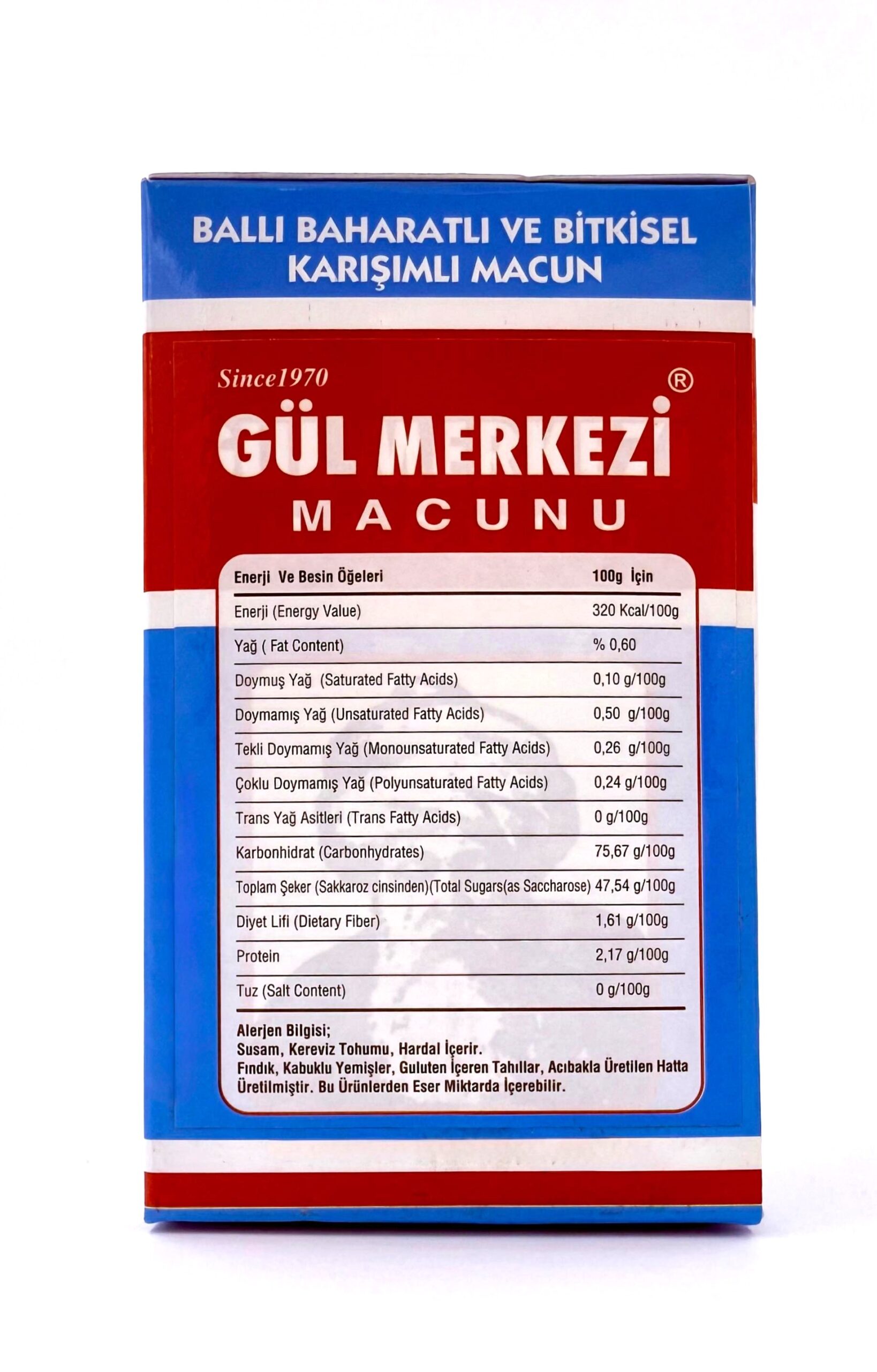 Çam Balı (%10), Anason (Pimpinella Anisum), Kimyon (Cuminum Cyminum), Kişniş (Coriandrum Sativum), Rezene (Foeniculum Vulgare), Oğul Otu (Melissa Officinalis), Nane (Mentha Piperita), Ihlamur Çiçeği (Tilia Sp.), Fesleğen (Ocimum Basilicum), Hatmi Çiçeği (Althea Officinalis), Civan Perçemi Çiçeği (Achillea Millefolium), Mayıs Papatyası (Matricaria Recutita / M. Chamomilla), Kediotu Kökü (Valeriana Officinalis), Meyan Kökü (Glycyrrhiza Glabra), Adaçayı Yaprağı (Salvia Triloba), Lavanta Çiçeği (Lavandula Angustifolia Miller), Şerbetçiotu (Humulus Lupulus), Kekik (Thymus Sp.), Isırgan Tohumu (Urtica Sp.), Sinirli Ot (Plantago Lanceolata), Keten Tohumu (Linum Usitatissimum), Mercanköşk (Origanum Majorana), Atkuyruğu (Kırkkilitotu) (Equisetum Arvense), Ceviz Yaprağı (Juglans Regia), Sarı Kantaron (Hypericum Perforatum), Biberiye (Rosmarinus Officinalis), Aynısefa Çiçeği (Calendula Officinalis), Ak Günlük (Boswellia Carterii), Tarçın (Cinnamomum Sp.), Zerdeçal (Curcuma Longa), Yenibahar (Pimenta Officinalis), Kakule (Elettaria Cardamomum), Zulumba (Curcuma Zedoaria), Hardal (Brassica Nigra), Kuşburnu (Rosa Canina), Andız Rizomu (Inula Helenium Rizome), Çakşır Kökü (Ferula Elaeochrytis), Zahter (Thymbra Spicata L.), Zencefil (Zingiber Officinale), Havlıcan (Alpinia Officinarum), Çörekotu (Nigella Sativa), Darıfülfül (Piper Longum), Karabiber (Piper Nigrum), Havuç Tohumu (Daucus Carota), Kereviz Tohumu (Apium Graveolens), Turp Tohumu (Raphanus Sativus), Tere Tohumu (Lepidium Sativum), Maydanoz Tohumu (Petroselinum Sp.), Pırasa Tohumu (Allium Porrum), Portakal Uçucu Yağı, Pekmez, Şeker, Glikoz Şurubu, Su, Sodyum Benzoat E 211, Sitrik Asit E 330.