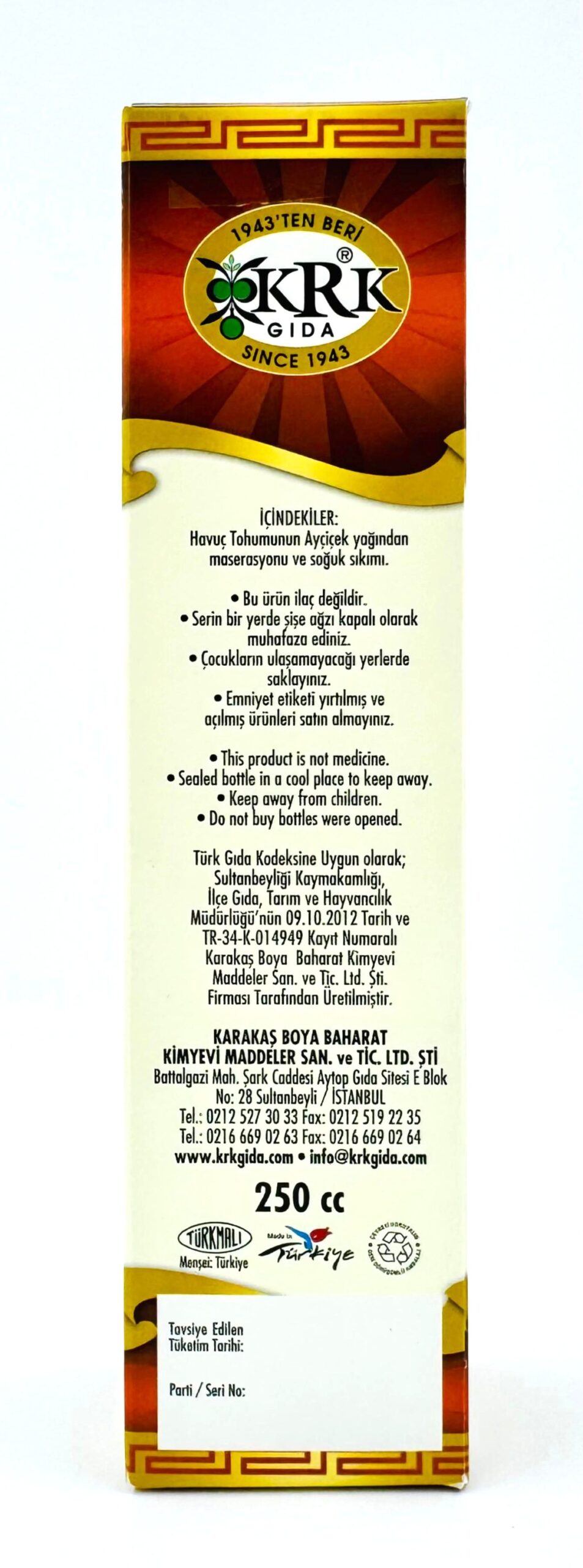 KRK GIDA HAVUÇ YAĞI 250CC
