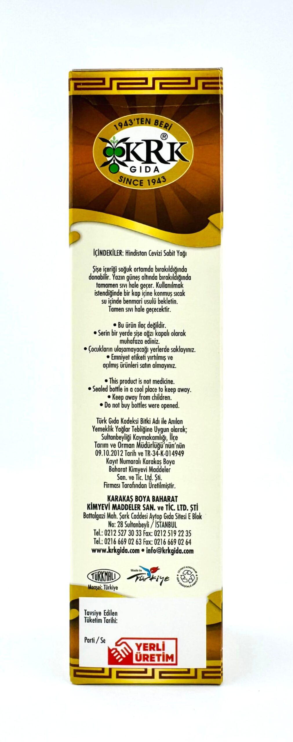 KRK GIDA HİNDİSTAN CEVİZİ YAĞI 250CC