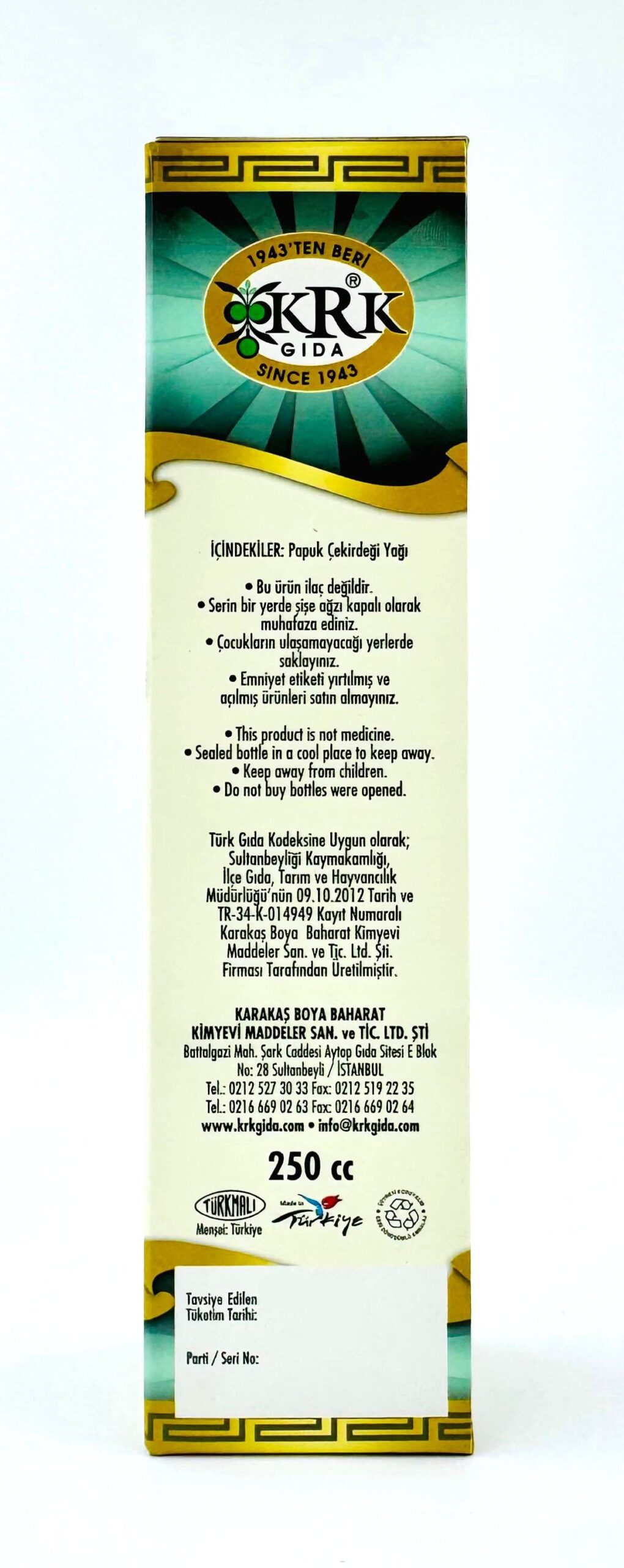 KRK GIDA PAMUK ÇEKİRDEĞİ YAĞI 250CC