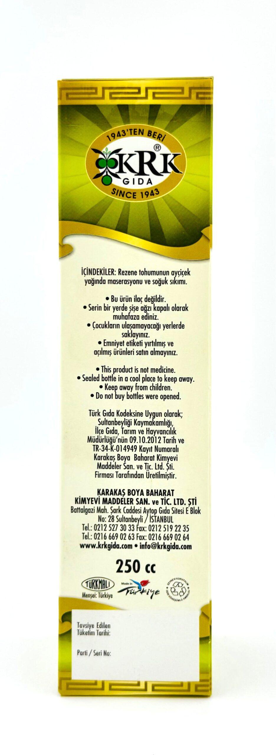 Üretim şekli: Maserasyon ve Soğuk Sıkım / Maceration and Cold Pressing