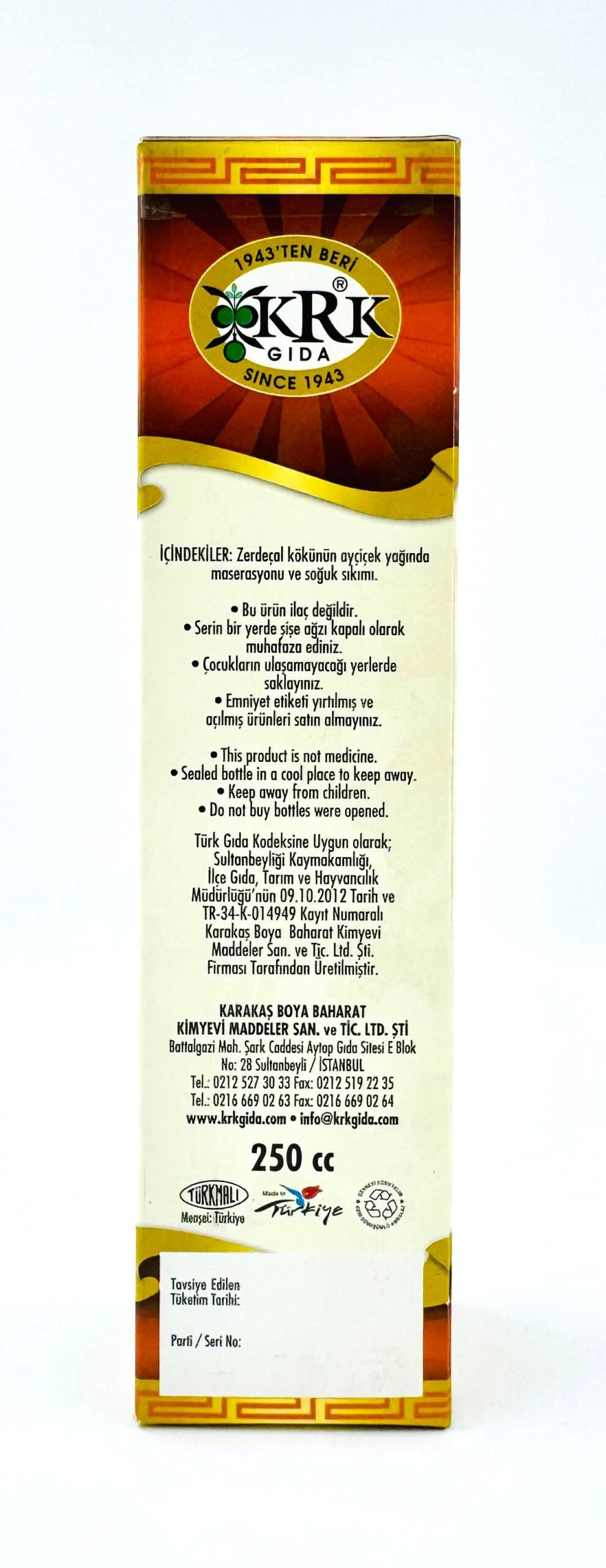 KRK GIDA ZERDEÇAL YAĞI 250CC